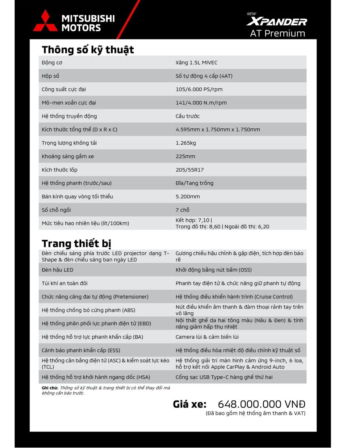 | Xpander 1.5 AT PREMIUM 2025: | 658000000 đ |