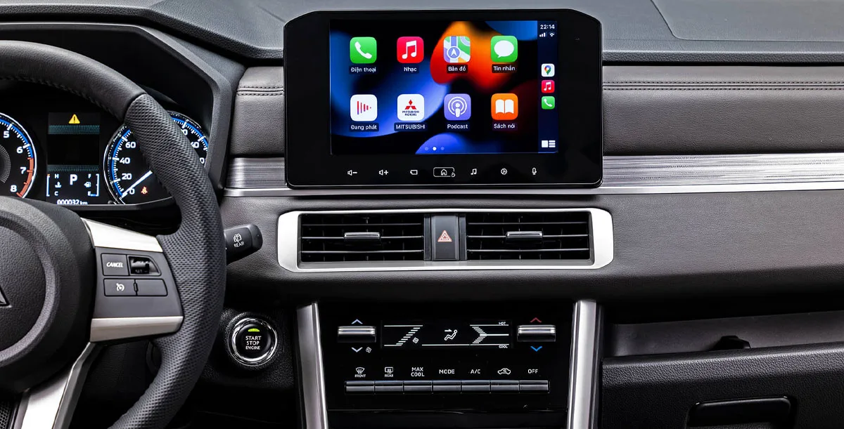 Kích thước màn hình Xpander Premium 2025 lớn với khả năng kết nối Apple CarPlay & Android Auto. Màn hình có khả năng kết nối tới cùng lúc 5 điện thoại và đàm thoại rảnh tay 2 điện thoại cùng lúc qua Bluetooth. Bên cạnh đó là khả năng điều khiển bằng cử chỉ.